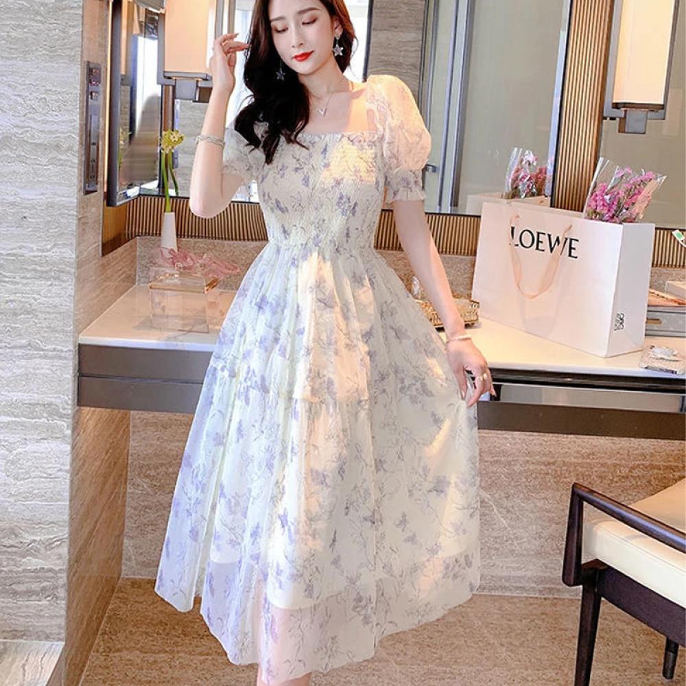 "أضف لمسة من الأناقة والأنوثة إلى إطلالتك في فصل الصيف مع فستان الشيفون الطويل الأبيض غير الرسمي هذا. يتميز الفستان بتصميم مطبوع عليه زهور جميلة، مما يضفي عليه لمسة رومانسية وأنيقة.